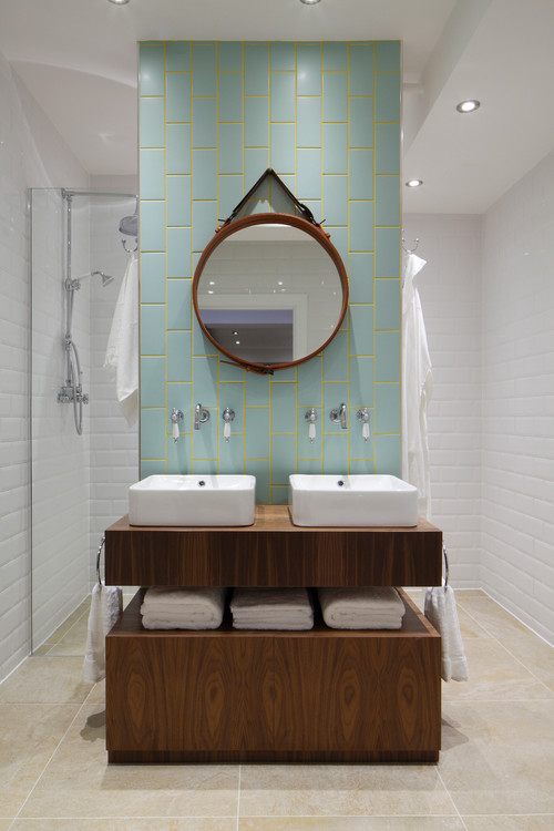 Jednostavne bijele pločice i zid obojan živom bojom mogu biti vrlo zanimljiv odabir koji garantira veselu kupaonicu. No za korak dalje, obojite fuge u boju zidova. Zanimljivo, zar ne?